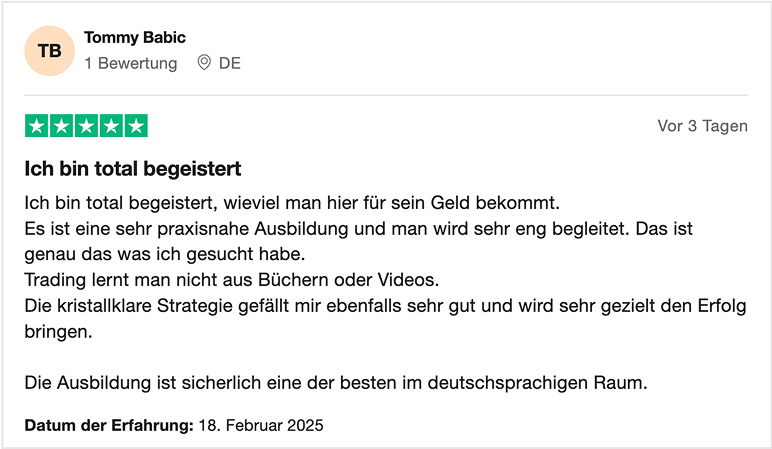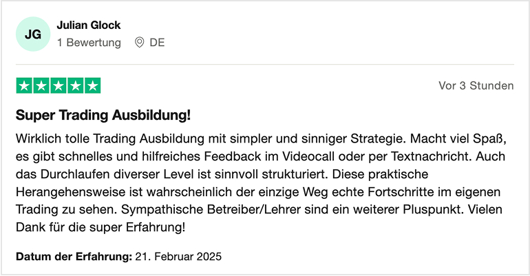Mache den ersten Schritt und erlerne fundierte Trading-Strategien von echten Profis. Sichere Dir jetzt Deinen Platz und starte Deine Reise als erfolgreicher Trader!