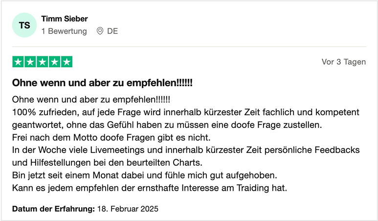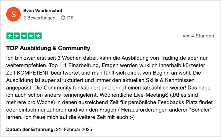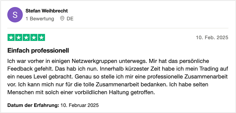 Unsere Kunden und Trader bewerten uns transparent auf Portalen wie Trustpilot oder Proven Expert.